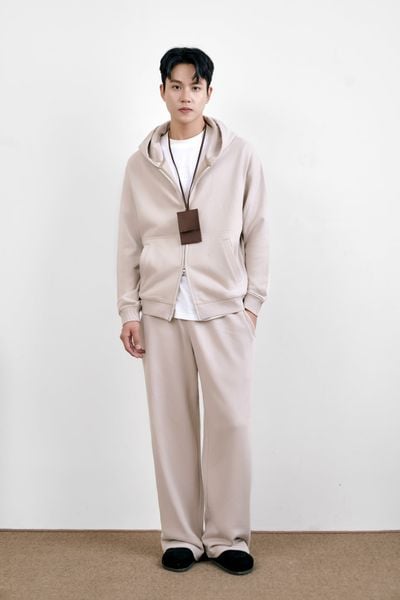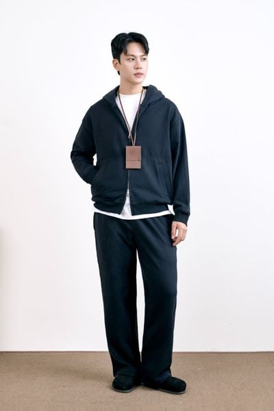 Set nỉ gồm hoodie khóa kéo hai chiều và quần nỉ dáng suông, mang lại sự thoải mái cho những ngày vận động nhiều.