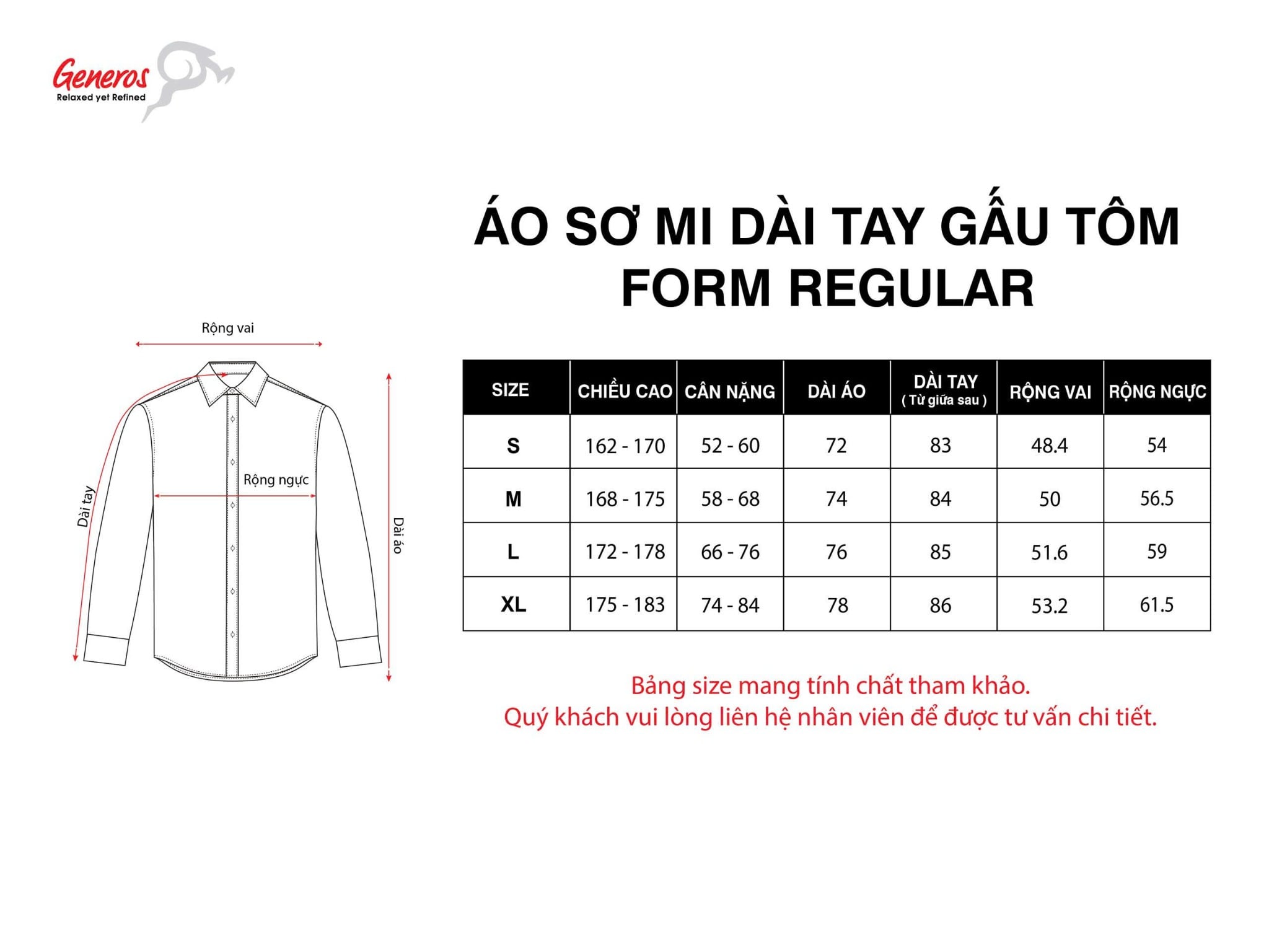 • Áo sơ mi Generos với form dáng regular, tôn dáng người mặc, phù hợp sử dụng cả đi làm và đi chơi.